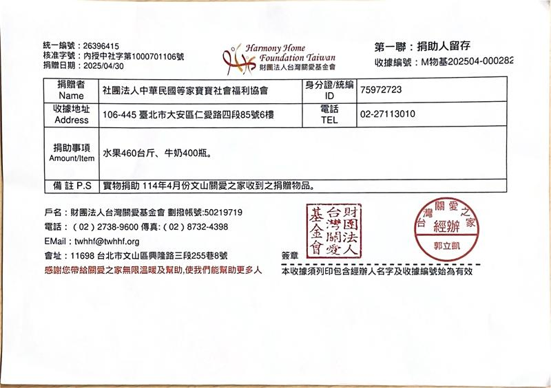 感謝每一位贊助者,您的每一份愛心我們都確實送達到育幼院囉! 邀請您與我們一起用新鮮蔬果、牛奶陪伴等家寶寶健康地長大,用愛心豐富孩子們的童年😊
