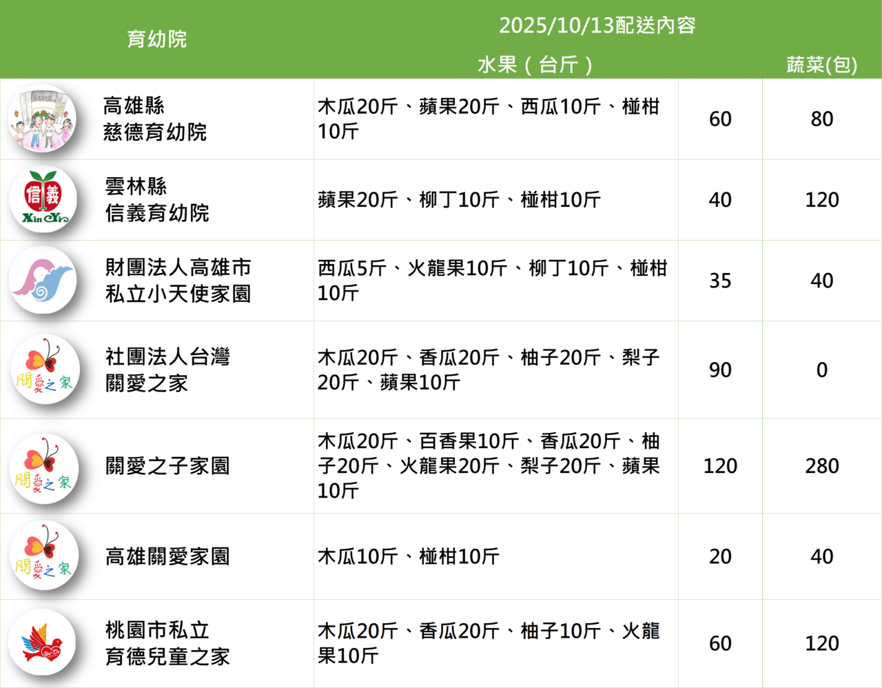 提供47間育幼院/安置機構一週所需的蔬果,陪伴育幼院孩子健康長大!