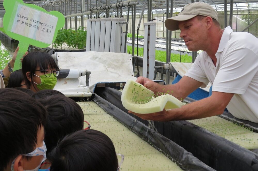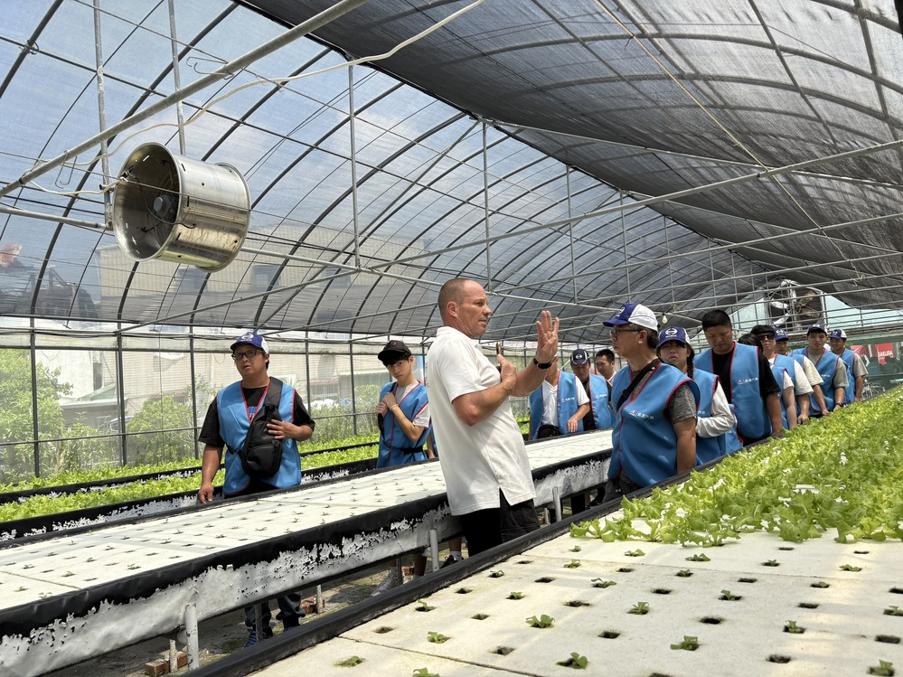 滿棚綠油油的生菜在陽光下發亮✨安東尼老師還請我們現場試吃~