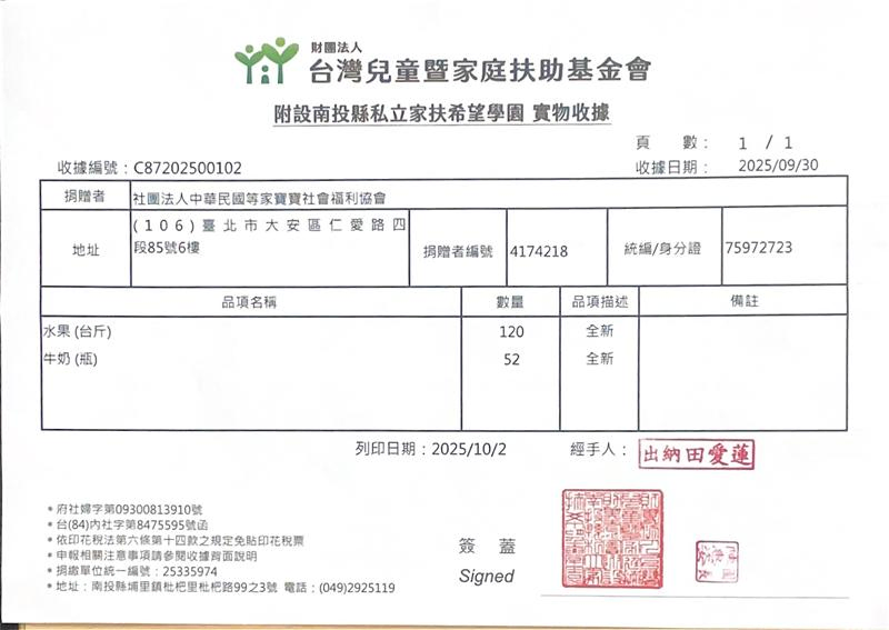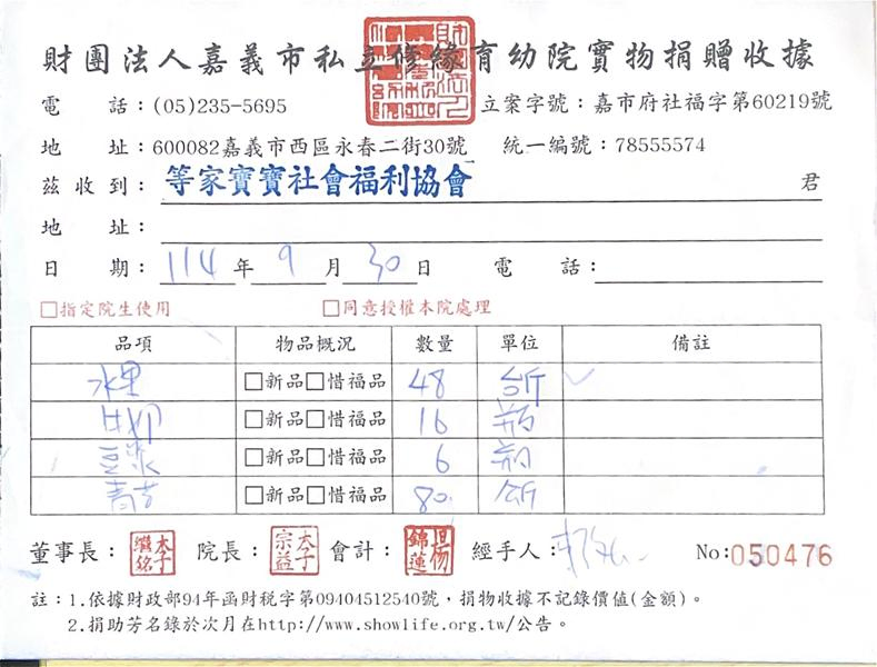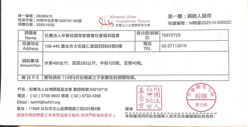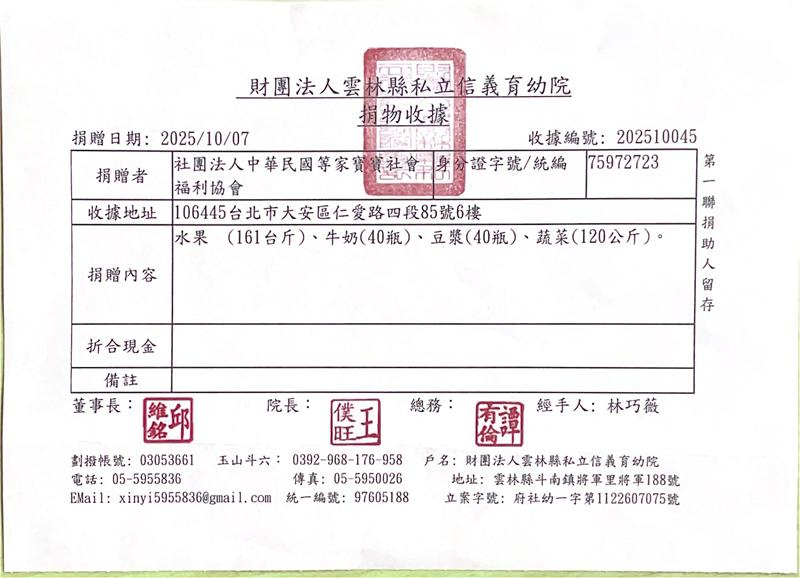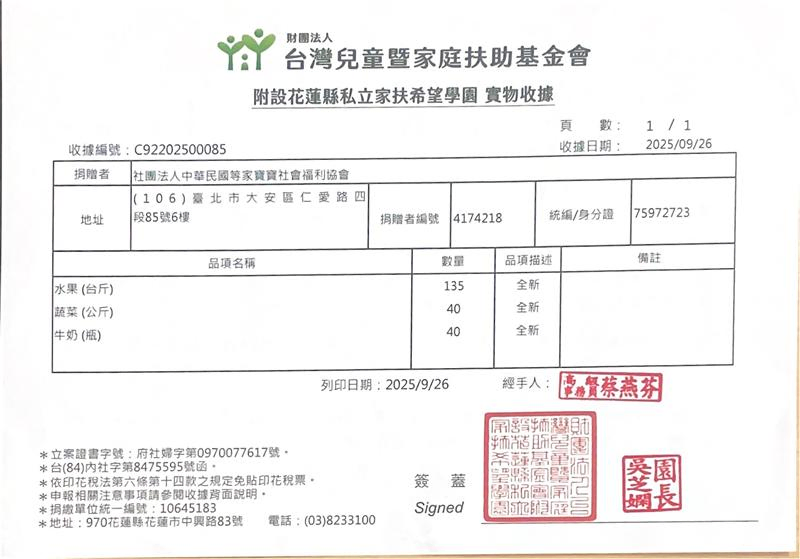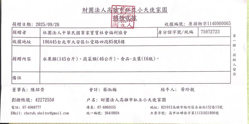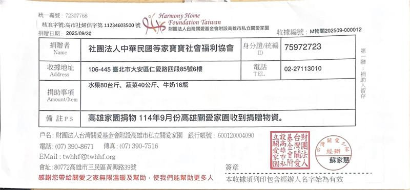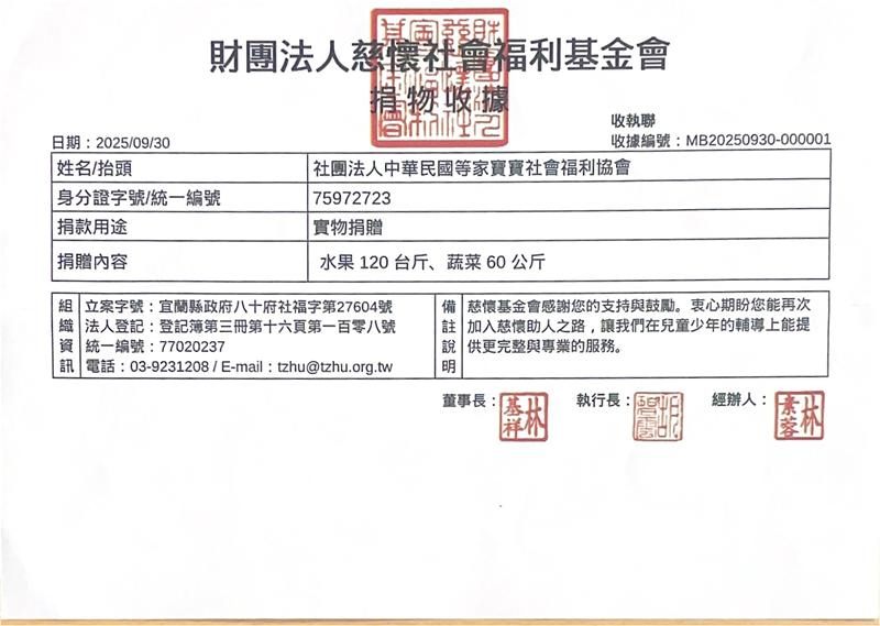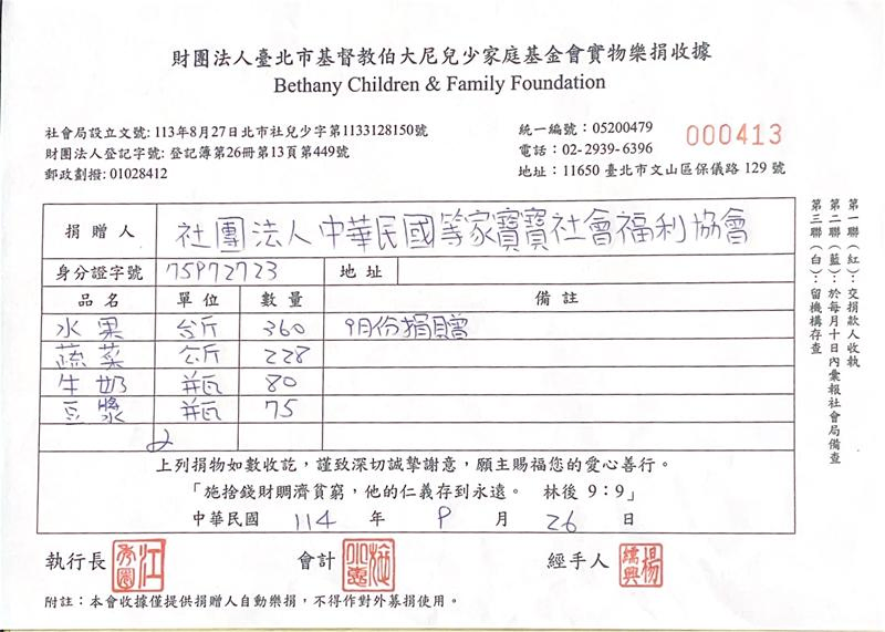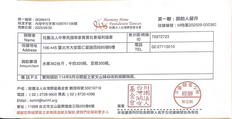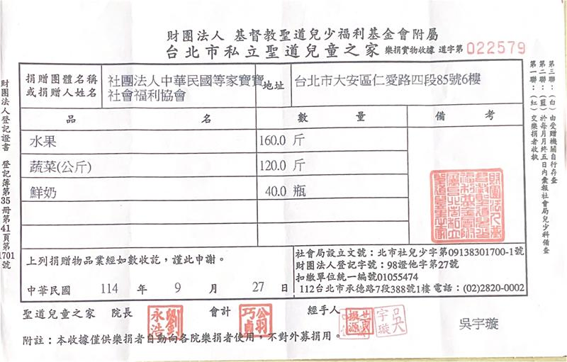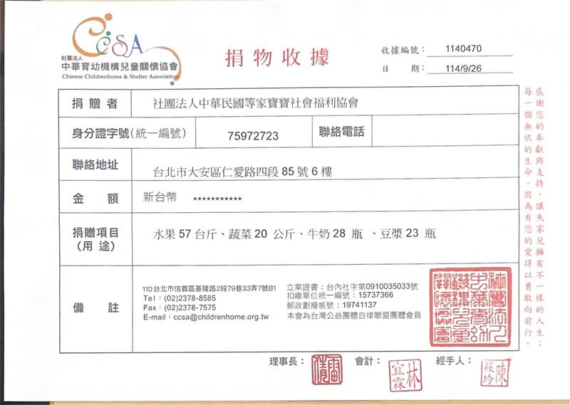 感謝每一位贊助者,您的每一份愛心我們都確實送達到育幼院囉! 邀請您與我們一起用新鮮蔬果、牛奶陪伴等家寶寶健康地長大,用愛心豐富孩子們的童年😊