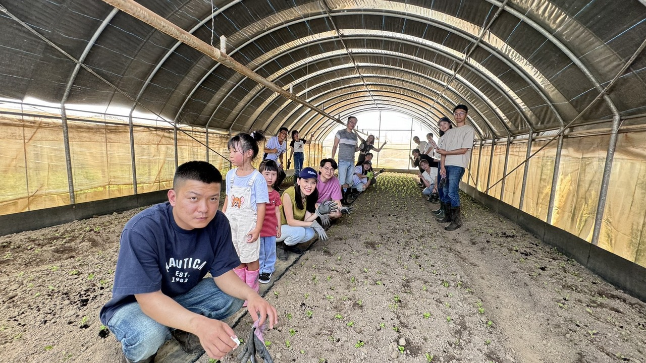 每當一株小松菜成功栽進土裡,就有人興奮地喊:「我會種了耶!」孩子們也模仿大人,開始努力挖洞。雖然這是他們第一次進溫室,卻也是一次「連結」的開始,公司夥伴們彼此幫忙、聊天、合照,甚至說「下次還想再來採收看看!」。企業志工說不只是種下小松菜,是給孩子滿滿的菜耶~