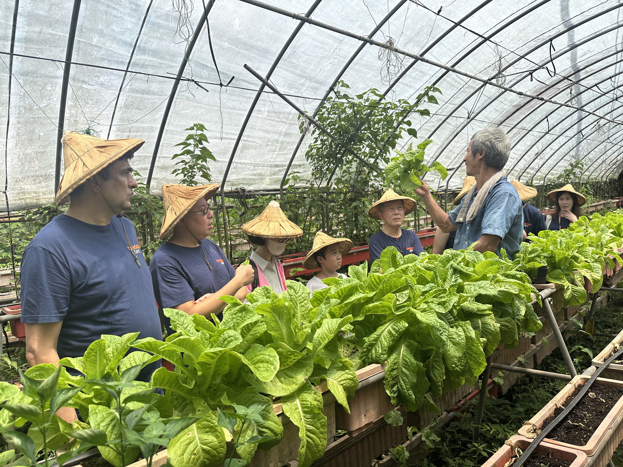 另外一場在野草花果農場,美商天睿科技邀請腦瘤協會的病友們一起參加,展開一場陽光下的療癒之旅。這天的大太陽特別熱情,大家一進入溫室,汗珠就開始在額頭上滾動,但沒有人退縮,每個人都小心翼翼地在菜叢間採下綠萵苣,臉上滿是專注與喜悅。