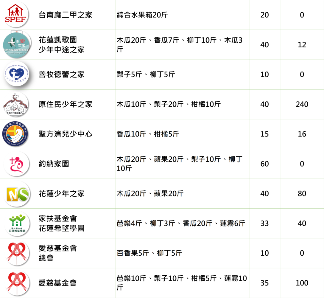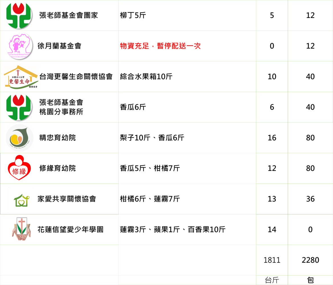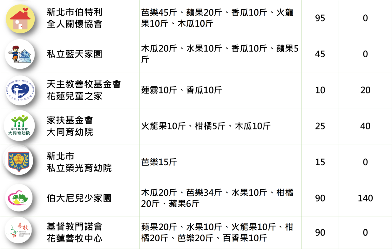 提供48間育幼院/安置機構一週所需的蔬果,陪伴育幼院孩子健康長大!本週配送品項有: