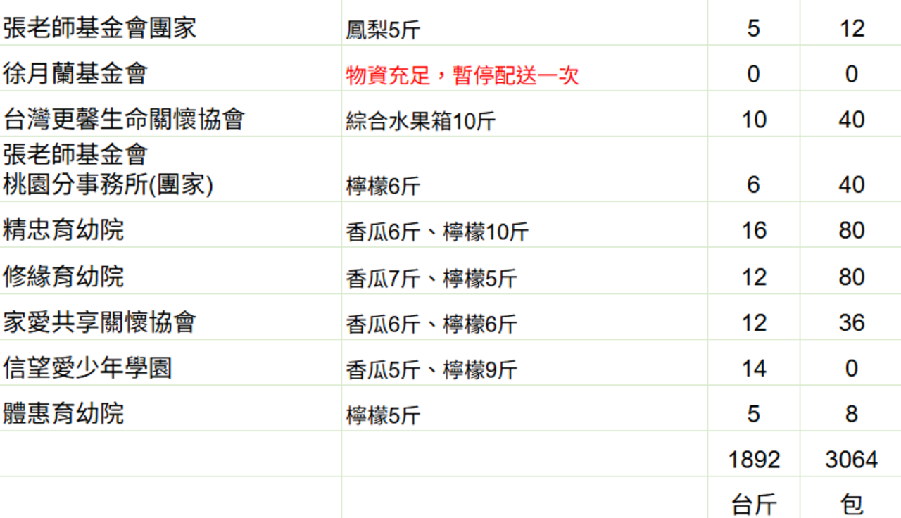 提供48間育幼院/安置機構一週所需的蔬果,陪伴育幼院孩子健康長大!本週配送品項有: