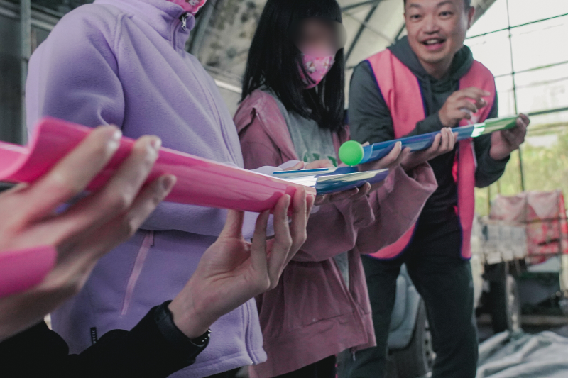 來到最熱力四射的環節——暖身遊戲「平衡溜滑梯傳接球」,考驗大小朋友的默契、合作能力與專注度,在笑聲中拉近彼此距離。最後,以跳跳兔子舞做為熱身收尾,即將開啟一日小農夫的一天!