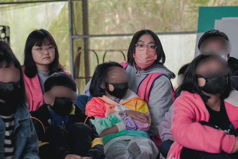 在羊咩咩老師講解的過程中,我們也看見孩子安心地靠在志工身上聆聽,孩子自然的勾著、靠著志工的手,這些看似平凡的畫面,其實正是育幼院孩子最需要的支持。穩定且長期的一對一陪伴,能幫助育幼院孩子建立信任與安全感,當孩子知道身邊總有人願意聽他說話、陪他成長,內心的不安也會慢慢被安定取代。