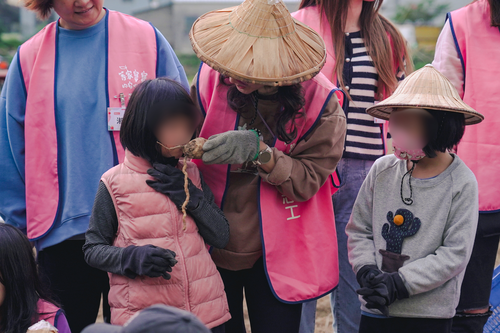 一月中,天氣微冷,孩子們個個穿著外套下車,像見到老朋友一樣,和前來迎接的小編及志工打招呼。參與多場愛心稻田與地瓜活動的孩子,對場域及志工都逐漸感到熟悉,相見歡時主動給陪伴志工大大的擁抱!