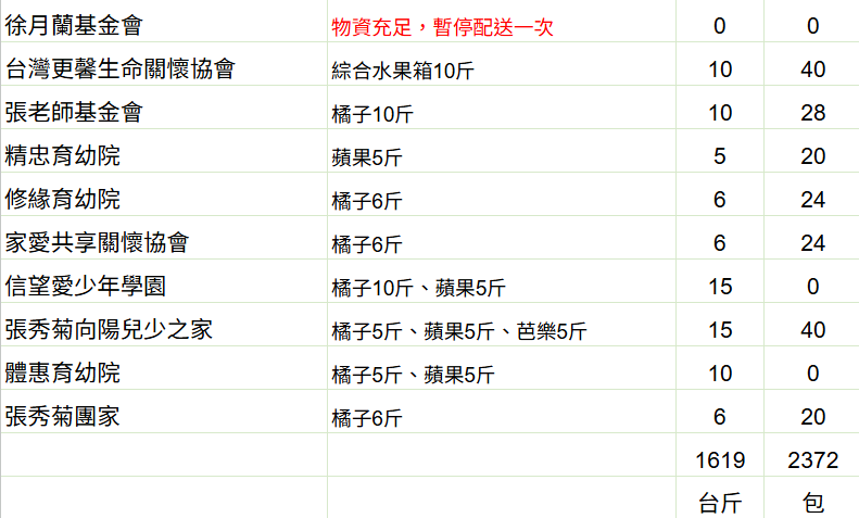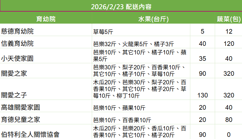 【新年新開始,夢想與陪伴持續前行】育幼院蔬果配送第484週