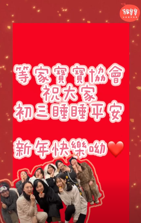 大年初一,等家寶寶向大家送上新春祝福!影片中以充滿年味的畫面與溫暖祝福,祝大家新的一年好運奔騰,也邀請大家在新的一年持續關心育幼院孩子,一起讓愛延續。