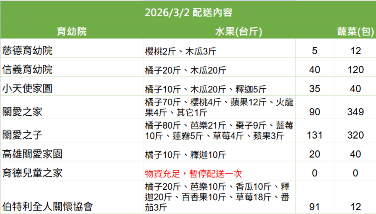 【愛的延續,陪伴不間斷】育幼院蔬果配送第485週
