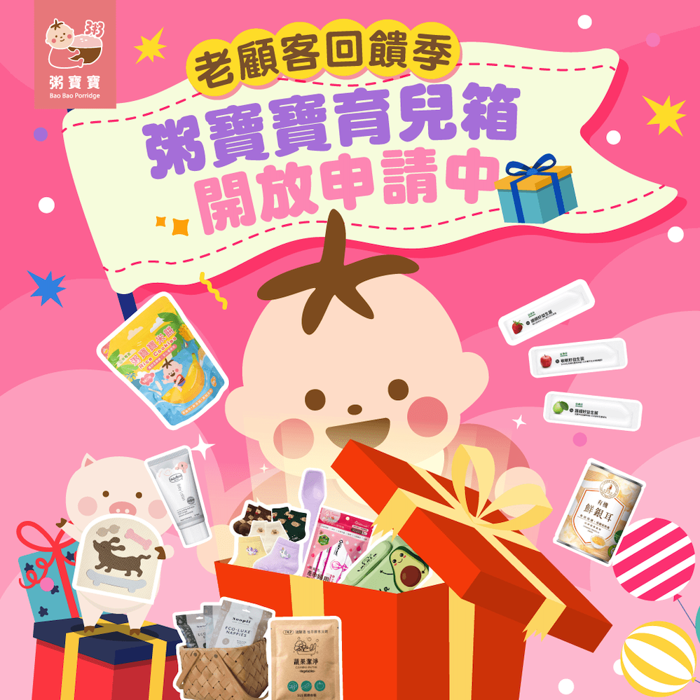 ▲粥寶寶育兒箱申請中!內含多品牌優選商品,趕快來申請!(圖/無毒農粥寶寶)