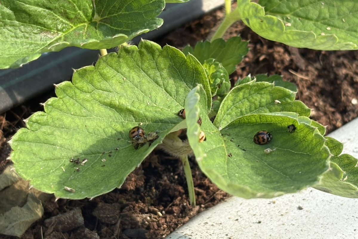 瓢蟲是草莓園的益蟲,會以捕食蚜蟲、蟎類和薊馬等害蟲的方式來協助防治蟲害。