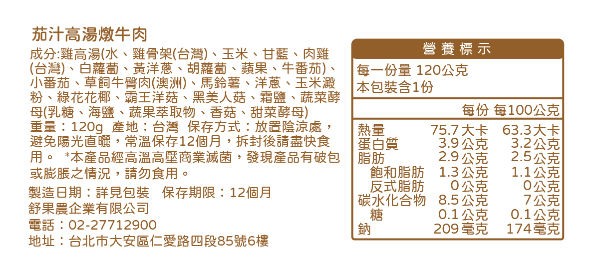 ※馬鈴薯為人工截切因此有大小塊差異,並且經高溫高壓商業滅菌與復熱後馬鈴薯可能較為細碎