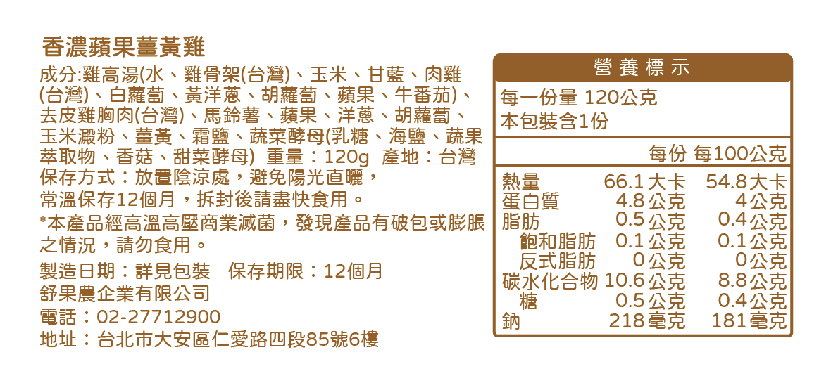 ※馬鈴薯為人工截切因此有大小塊差異,並且經高溫高壓商業滅菌與復熱後馬鈴薯可能較為細碎。