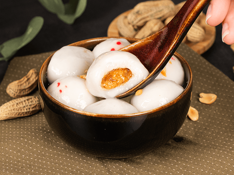 •芝麻與花生的湯圓餡料,乃嚴選已炒製研磨好的微細顆粒狀芝麻粉與花生粉,再加入糖粉、豬油等等,經獨特手工調配拌製成內餡料。