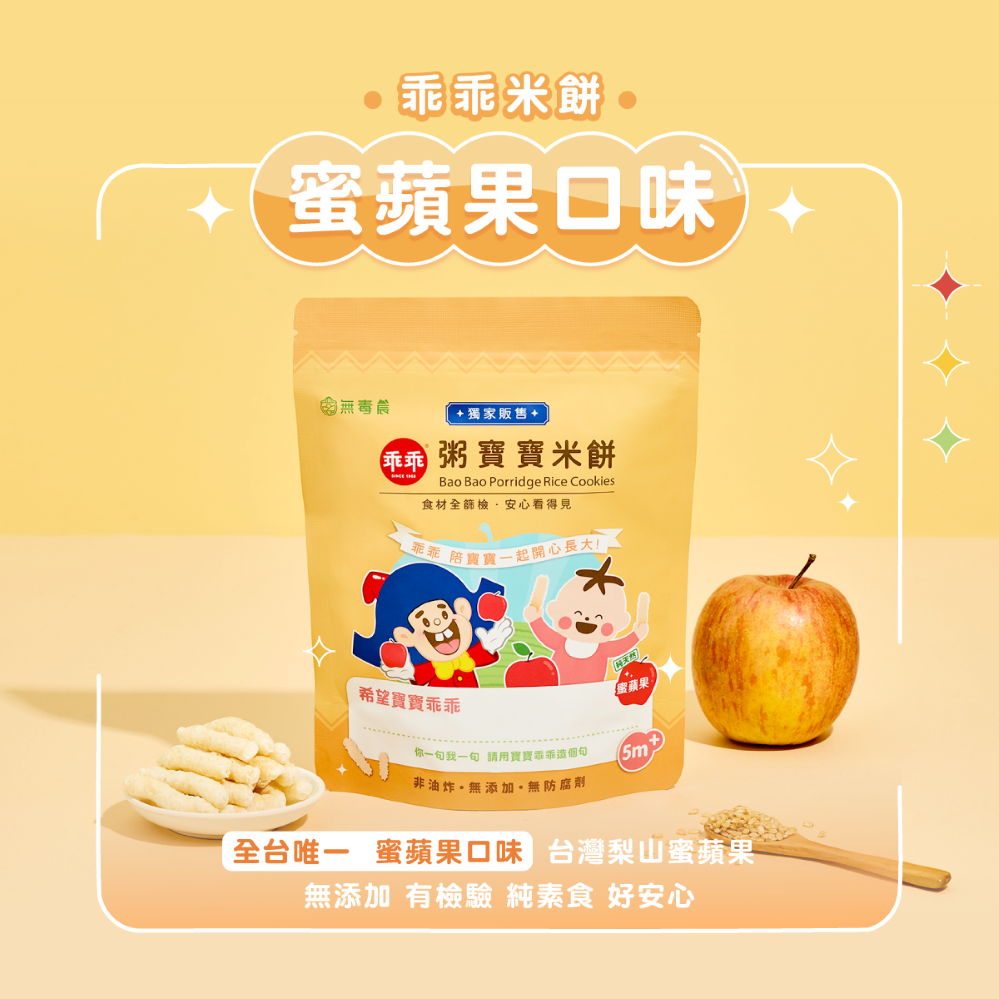 推出台灣首款以「梨山蜜頻果」為口味的寶寶米餅!