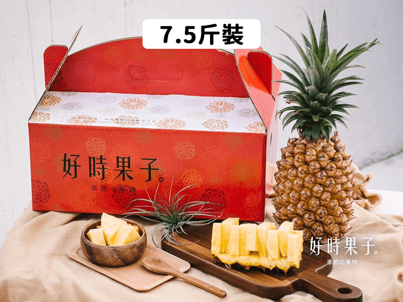 特大果7.5斤裝,3-5顆裝 特大果10斤裝,3-5顆裝 中大果17斤裝,7-10顆裝split鳳梨收到開箱後,放置於常溫陰涼通風處保存。 全熟的鳳梨香氣十足但不耐儲存,果皮黃熟後盡快於賞味期限內食用為佳,或切開處理後放入冰箱冷藏,以保持新鮮。