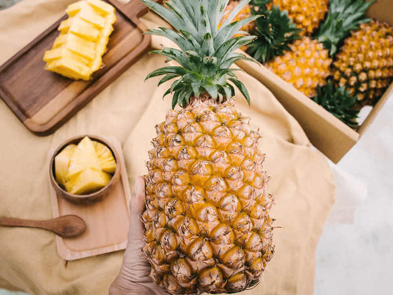 鳳梨收到開箱後,放置於常溫陰涼通風處保存。