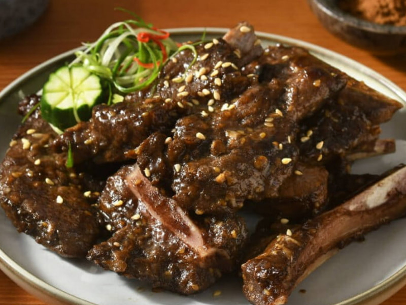 很多淡味的食材因為加入了五香粉而完全變化,肋排經由醬料,搭配五香粉醃漬,