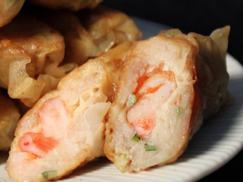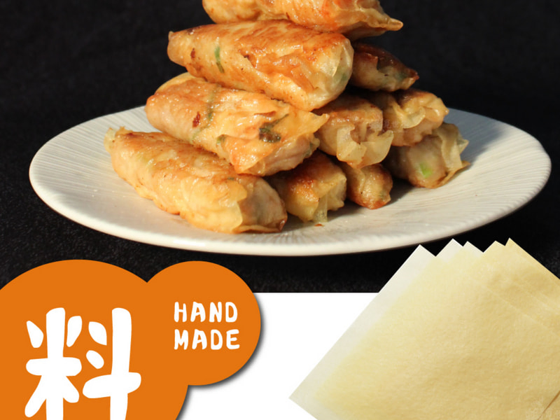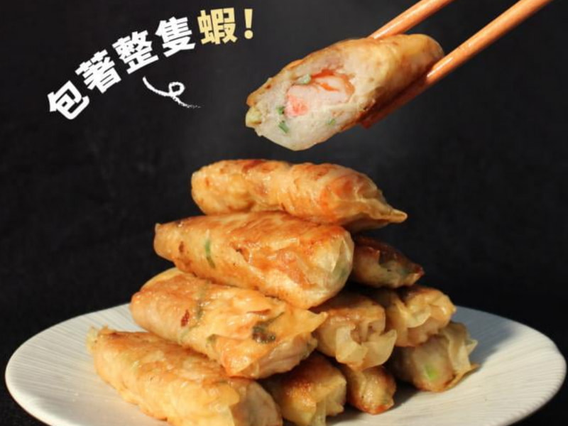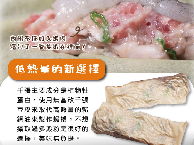 使用無基改千張豆皮來取代高熱量的豬網油來製作蝦捲