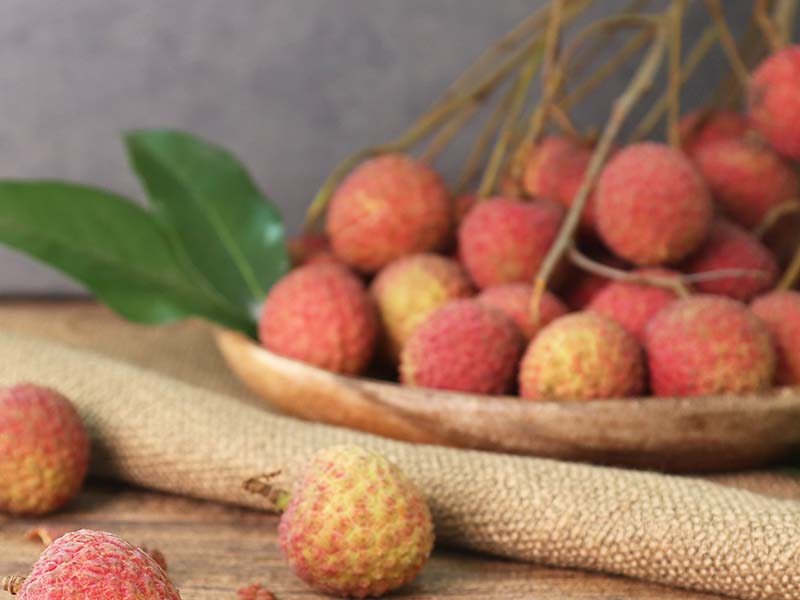 新鮮的荔枝從外觀看起來必須果皮鮮嫩無損,玉荷包建議紅中帶點綠為佳,不是每個荔枝越鮮紅就越好喔!