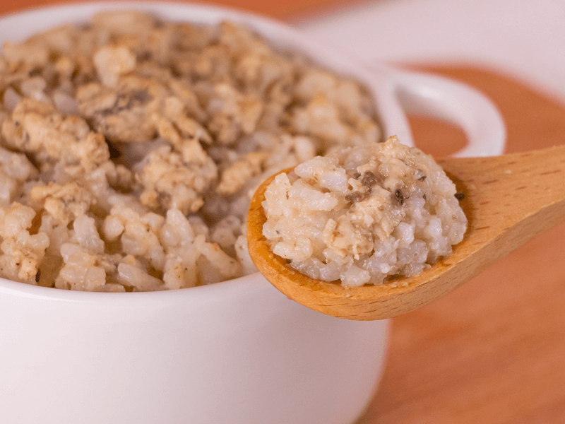嚴選大野山雞滴雞精搭配主廚精選安心無毒食材一同熬煮,提升天然食材的香氣,使燉飯整體層次提升。優質食材的營養、無毒蔬果的鮮甜及香醇的肉品,讓寶寶一口接一口,安心又營養。