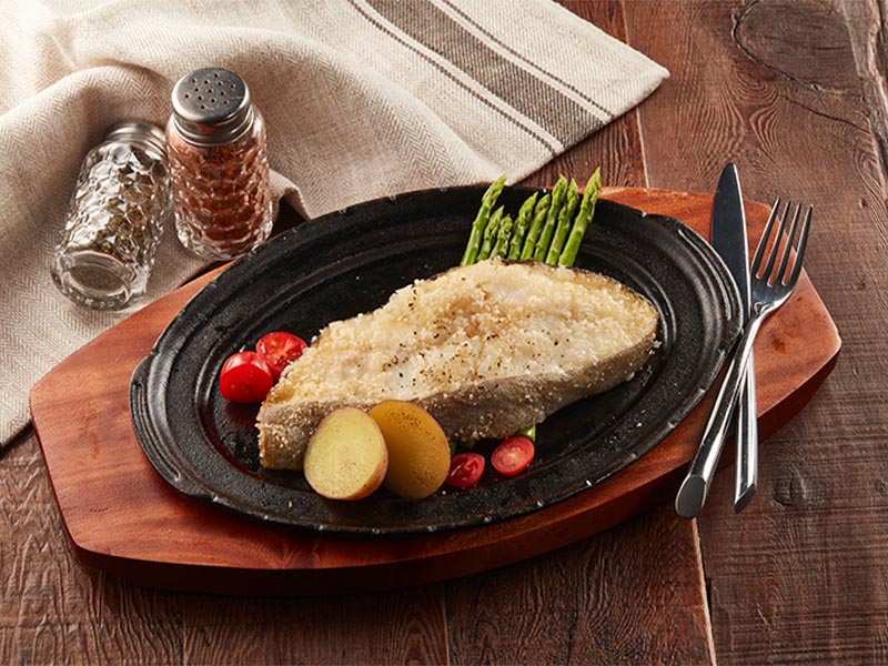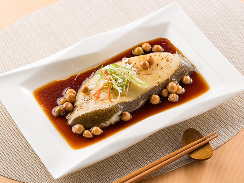 大比目魚,又稱扁鱈,肉質細緻緊實、油脂分布均勻,口感滑嫩不乾柴,風味清甜自然