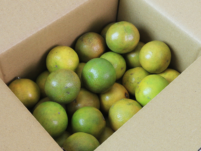 帝王柑依產期、日照與熟成度不同,外皮顏色可能呈綠皮至黃皮,恕無法指定顏色,皆依產地採收狀況出貨
