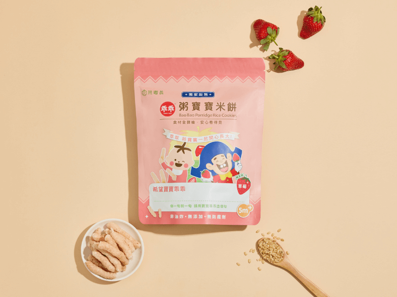 嚴選無毒草莓,推出以「大湖草莓」經典口味的寶寶米餅!