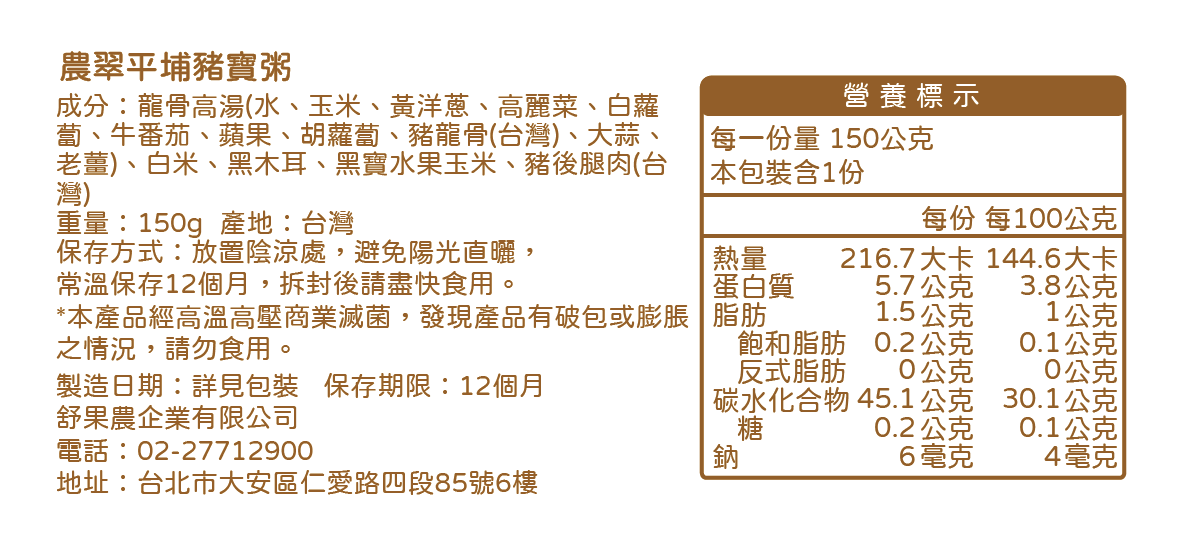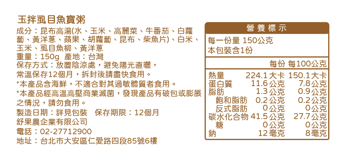 備註:活力吻仔魚粥因澱粉類食材含量較少,口感較其他常溫粥口味稀一點,