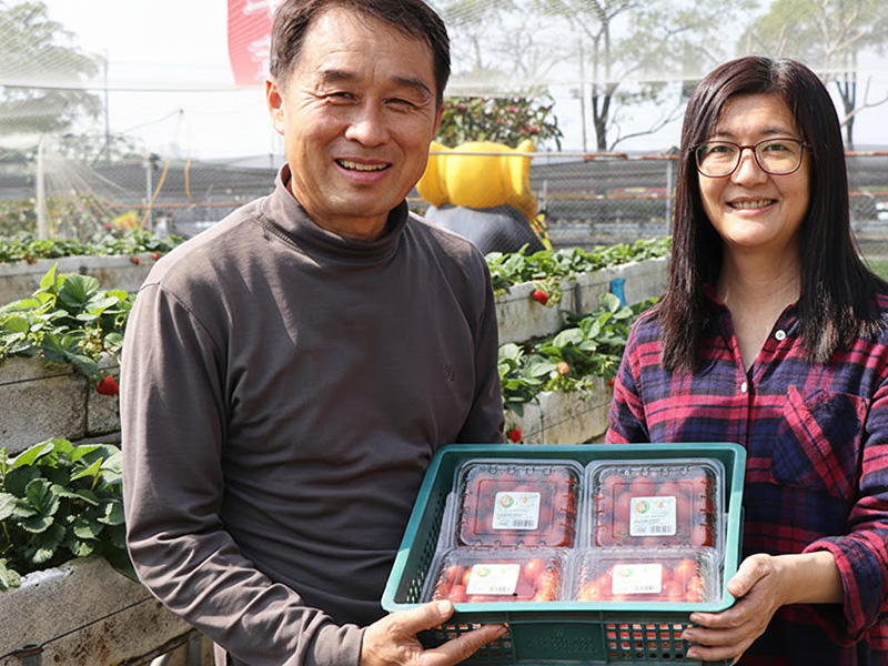 台南溫暖的陽光照耀著一顆顆橘黃色的小番茄,接待我們的黃大姊和李大哥向我們解說這寬闊的園區,除了兩大片的草莓園,還有其他區域種著小番茄、百香果、玉米筍等等各類農產品。黃大姊說大安有機草莓園是1981年開園,是台南第一家的有機果園。過去黃大姊的父母在善化一帶走得相當前面,30多年前就開始作生態戶外教學,透過遊園解說默默埋下環境永續的理念。