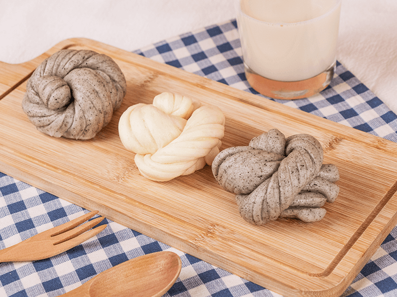 我們與台灣品牌沐甄豆聯名啦!選用以台灣在地非基改黃豆製成的濃醇豆漿取代水製作花捲饅頭,讓自然豆香融入每一口麵香之中。
