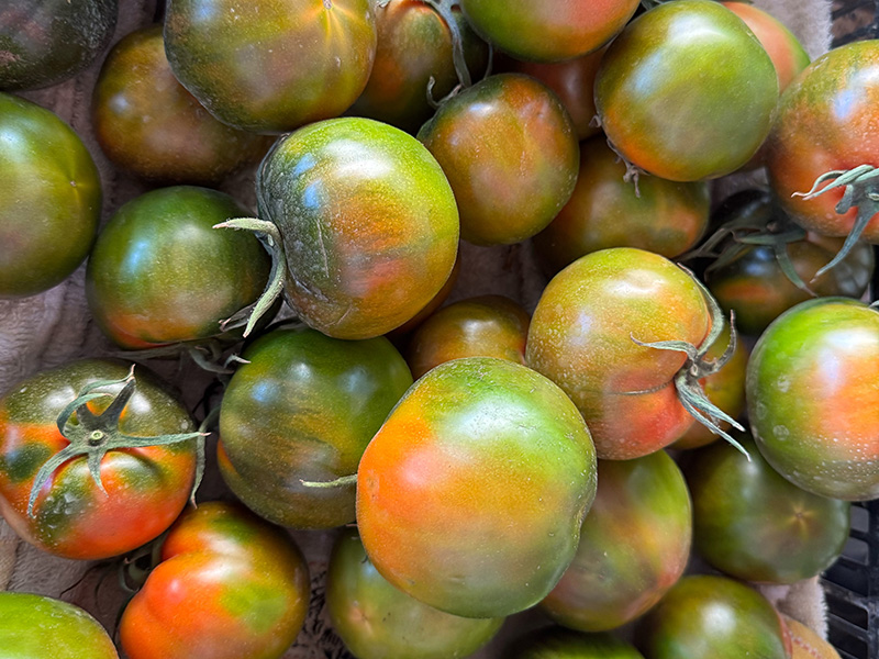 黑柿番茄(又稱「一點紅」或中南部口中的「甘仔蜜」)是台灣最經典的古早味品種,其歷史可追溯至400年前荷治時期,由印尼輾轉抵台。這款番茄外皮帶有深邃的墨綠色,頂部微紅時最是美味。儘管它皮薄質優且營養豐富(富含茄紅素與維生素C),但因對環境敏感、極易受病蟲害威脅,使得收成率偏低,這也導致市面上愈發罕見。如今在農民不計辛勞的呵護下,這份歷史遺下的美味珍珠才得以延續。