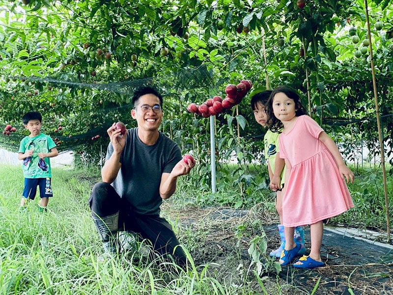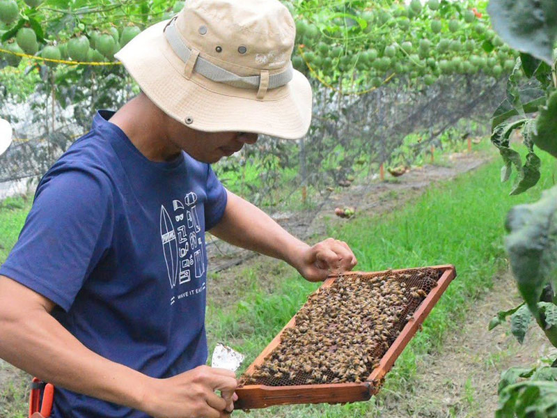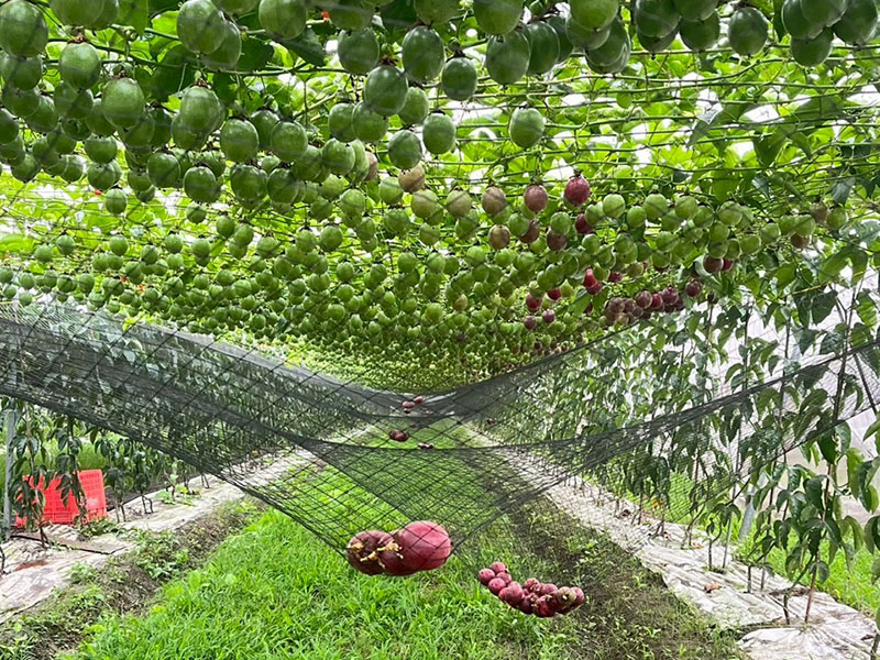 清晨時分,當陽光剛翻過藤架,映照在園內綿延的草地上時,空氣中早已瀰漫著淡淡的百香果香。蜜蜂比農人更早開工,在冬日的暖陽下穿梭授粉,讓每一顆種子在溫潤的氣候中緩慢熟成,鎖住最豐盈的果汁。
