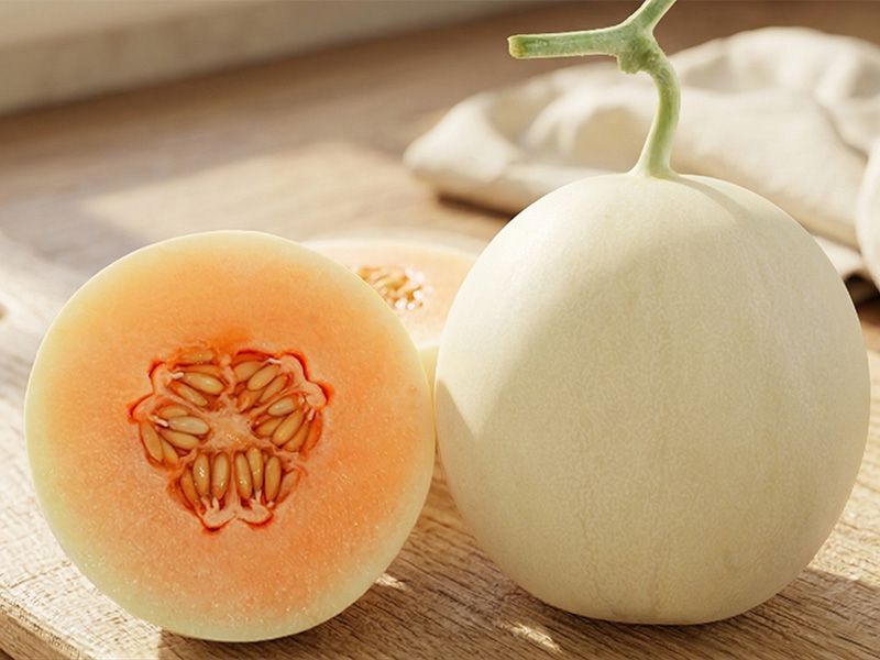 「天使瓜」是由高雄市政府農業局輔導在地農友,攜手農友種苗公司與祥鶴農產品生產合作社共同研發的新品種。作為近年備受期待的新星瓜種,天使洋香瓜外型圓潤、果皮光滑,整體多呈現淡綠中帶著柔和金黃色澤,看起來清爽秀氣、討喜亮眼。和大家熟悉的網紋洋香瓜相比,天使洋香瓜屬於薄皮型香瓜,果皮較薄、手感更細緻,香氣較清甜的路線,不會過於濃烈,兼具香瓜的爽口與洋香瓜的細緻果香,是接受度很高、也相當耐吃的瓜類品項。