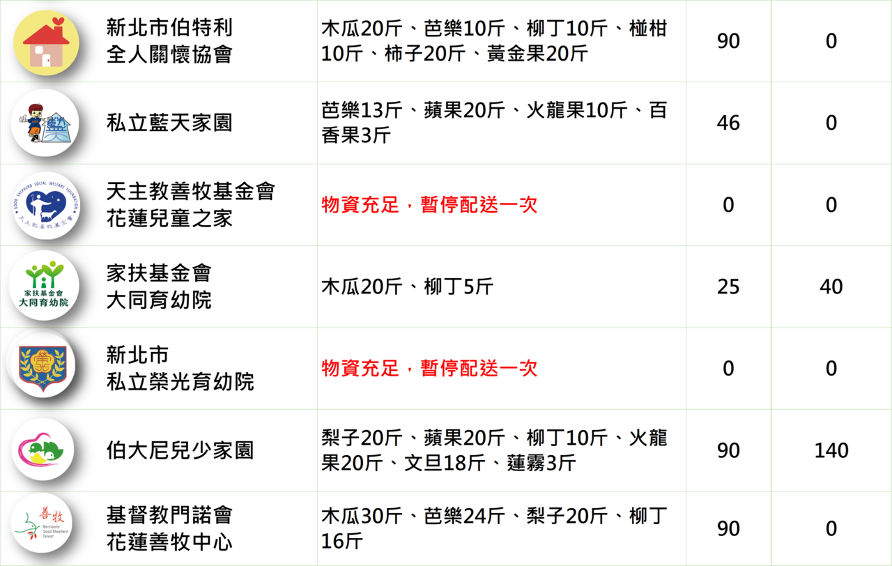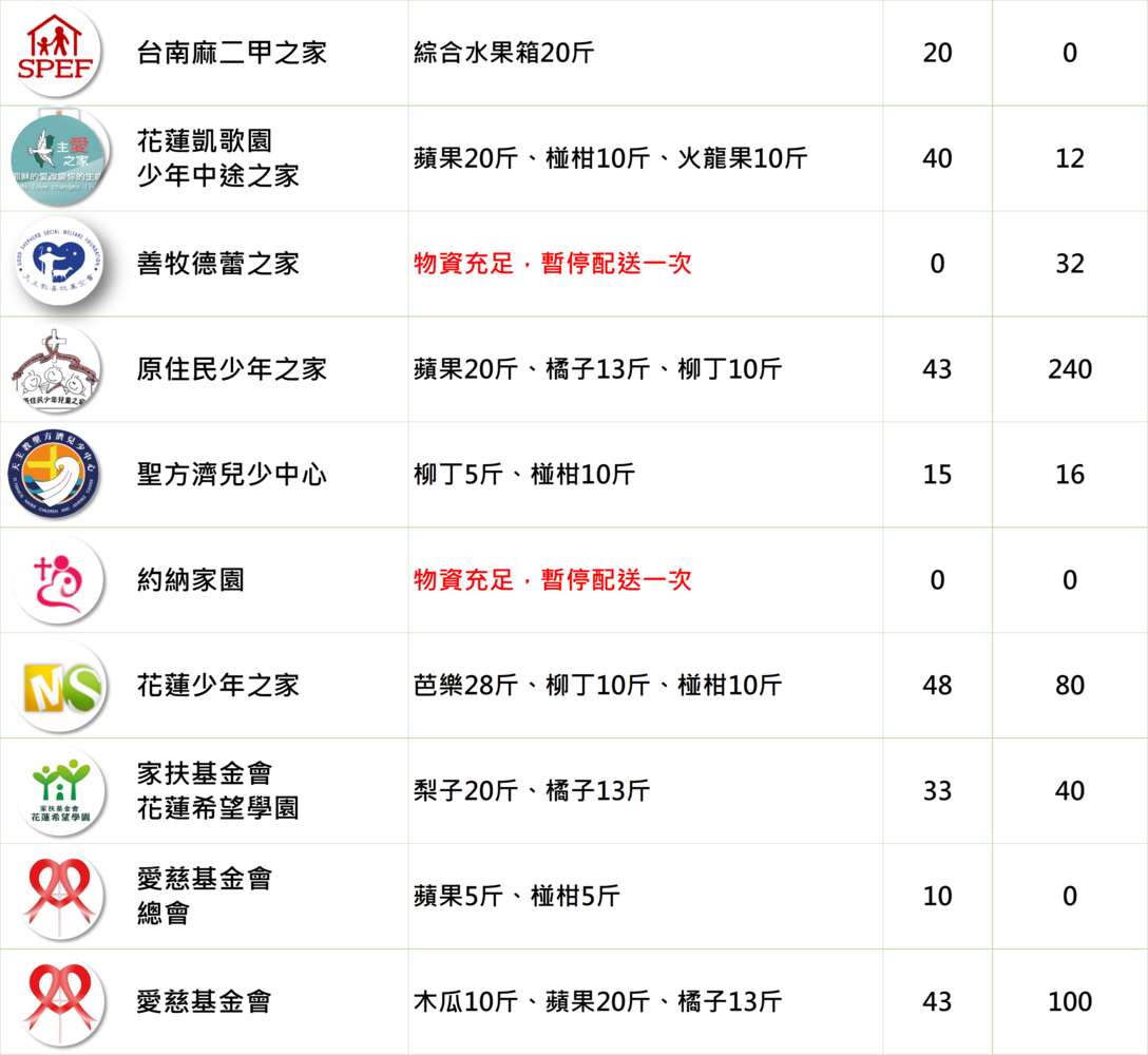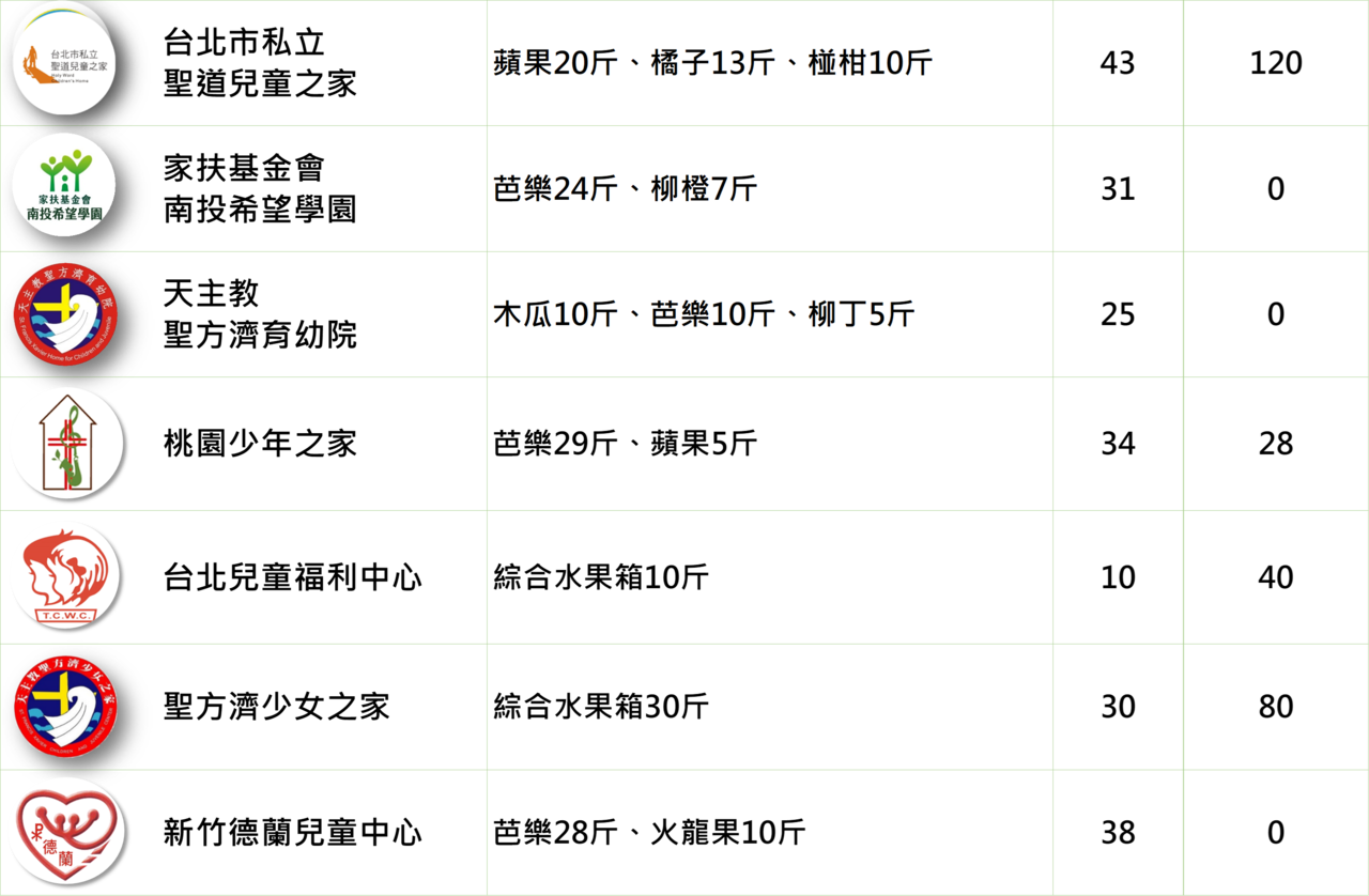 提供48間育幼院/安置機構一週所需的蔬果,陪伴育幼院孩子健康長大!本週配送品項有: