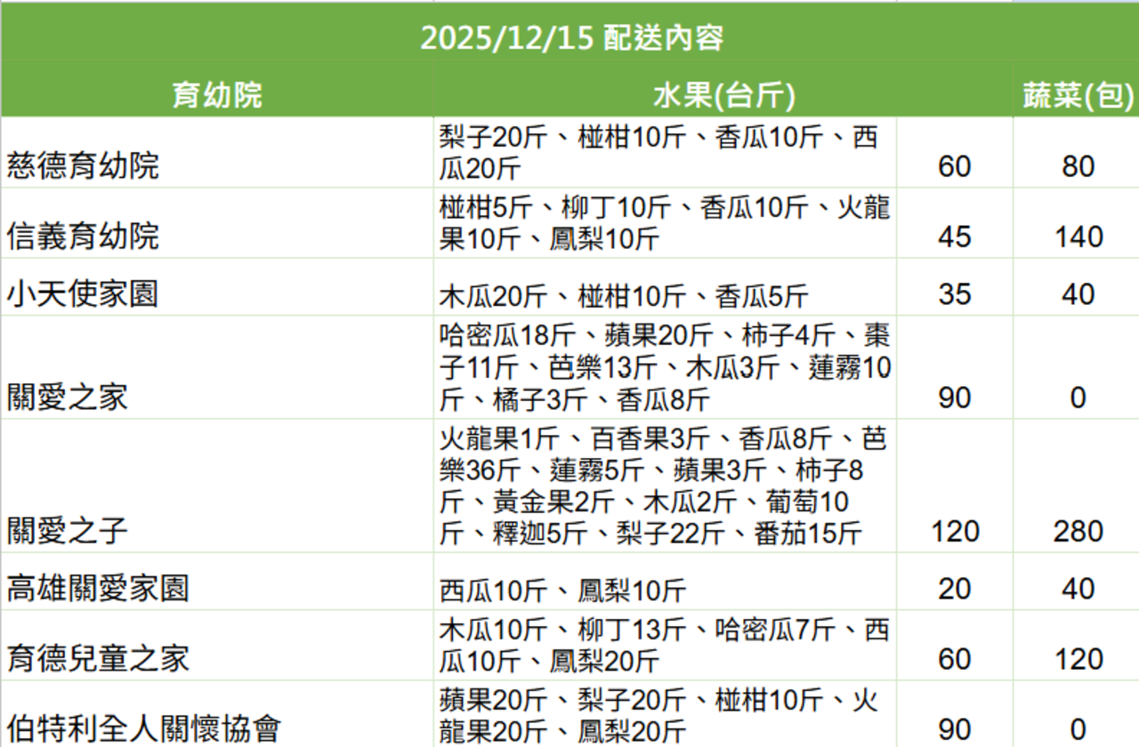 謝謝你持續與我們一起走在陪伴的路上。無論是企業的投入、志工的付出,或是一份穩定的關注,都是育幼院孩子成長路上不可或缺的支持。下週的蔬果週報,我們將繼續和你分享更多孩子的日常、更多正在發生的溫暖行動。