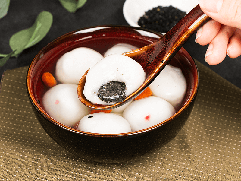 •芝麻與花生的湯圓餡料,乃嚴選已炒製研磨好的微細顆粒狀芝麻粉與花生粉,再加入糖粉、豬油等等,經獨特手工調配拌製成內餡料。