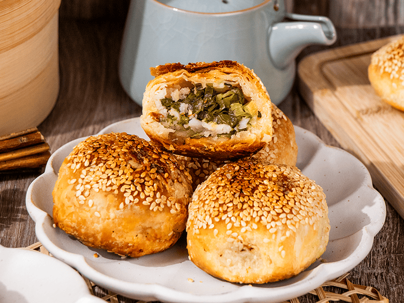 外皮香酥、內餡鹹香撲鼻,滿滿蔥花的鮮甜在舌尖綻放,讓人忍不住一口接一口,簡單卻最讓人回味無窮。