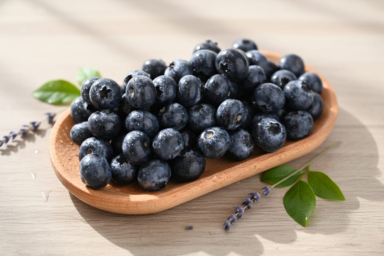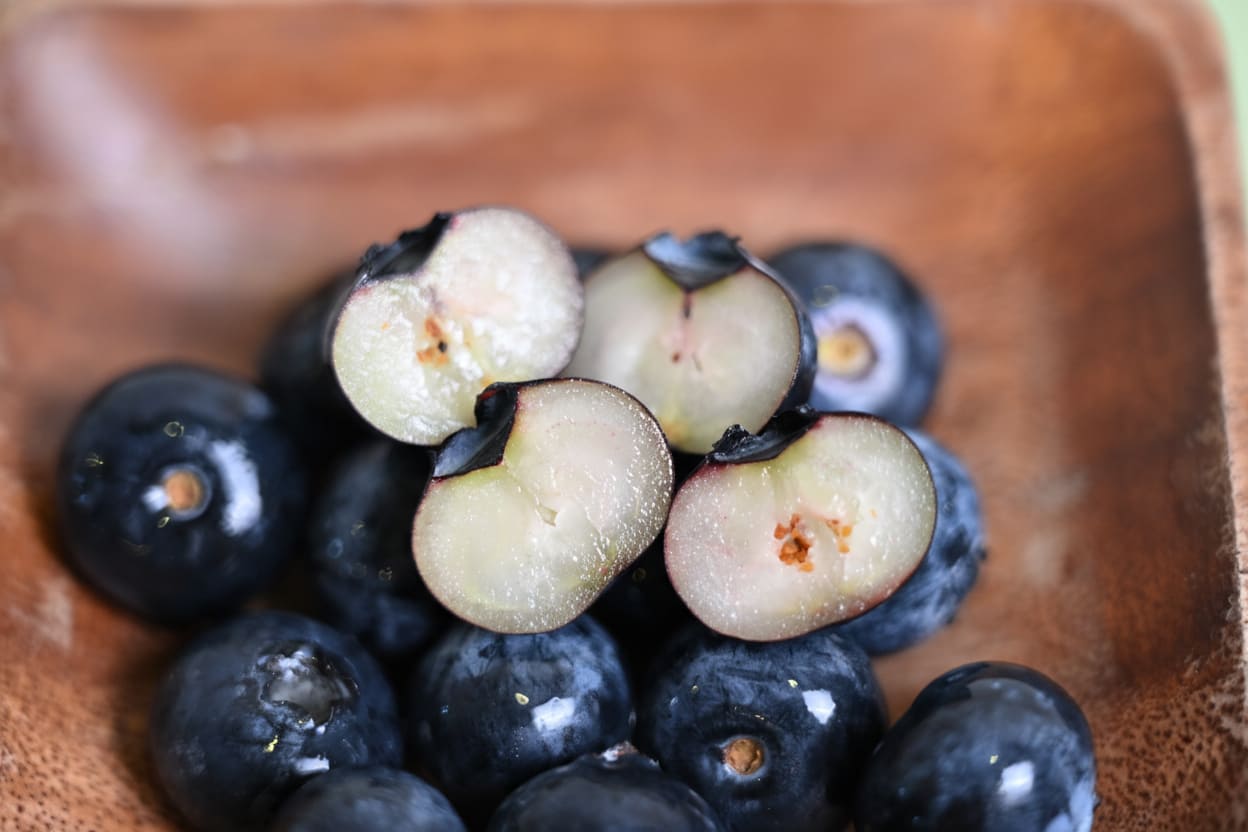 藍莓表面白色果粉是天然蠟質層,保護果實減少水分流失,品質佳者果粉越厚。