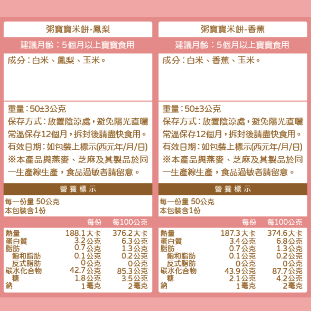 寶寶米餅:香蕉米餅1入、鳳梨米餅1入