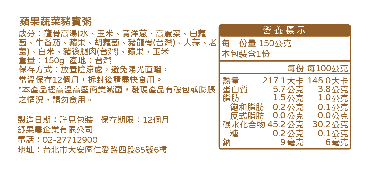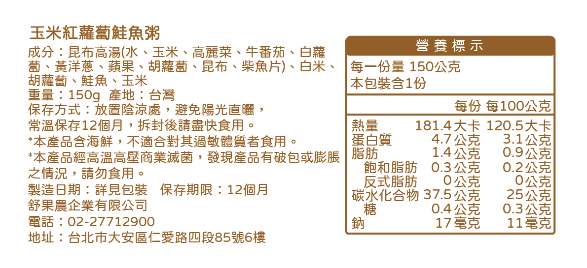 內含玉米紅蘿蔔鮭魚粥、金瓜山藥雞肉粥、蘋果蔬菜豬寶粥、茄汁紅蘿蔔牛寶粥、鮮茄綜合菇菇粥,各種肉蛋白營養一次攝取!