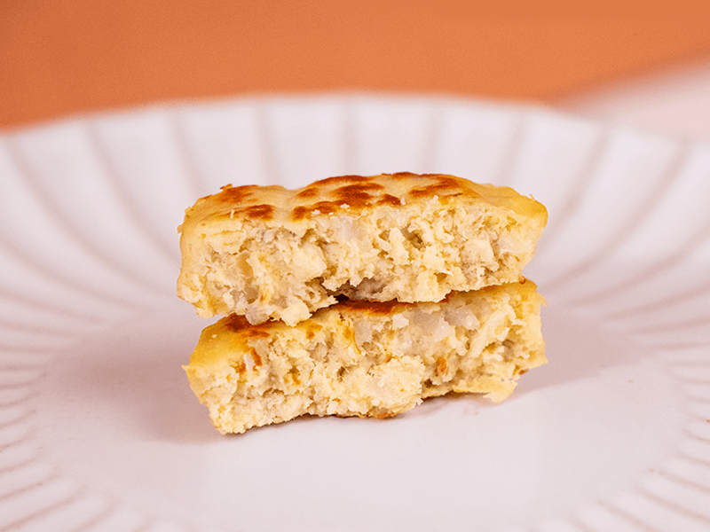 1.爐火加熱:倒出後,於平底鍋以小火煎約3分鐘雙面金黃即可食用。