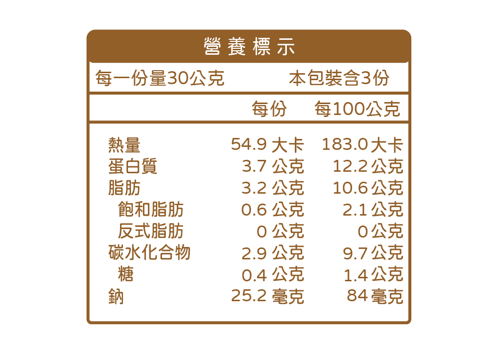 ※本產品與蛋、大豆、堅果、奶類、芝麻、含麩質之穀物及其製品於同一產線生產,對上述食品過敏者請留意。